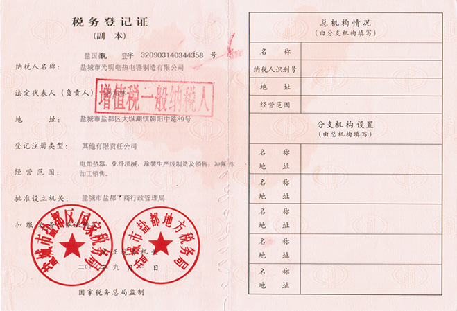 - 稅務登記證